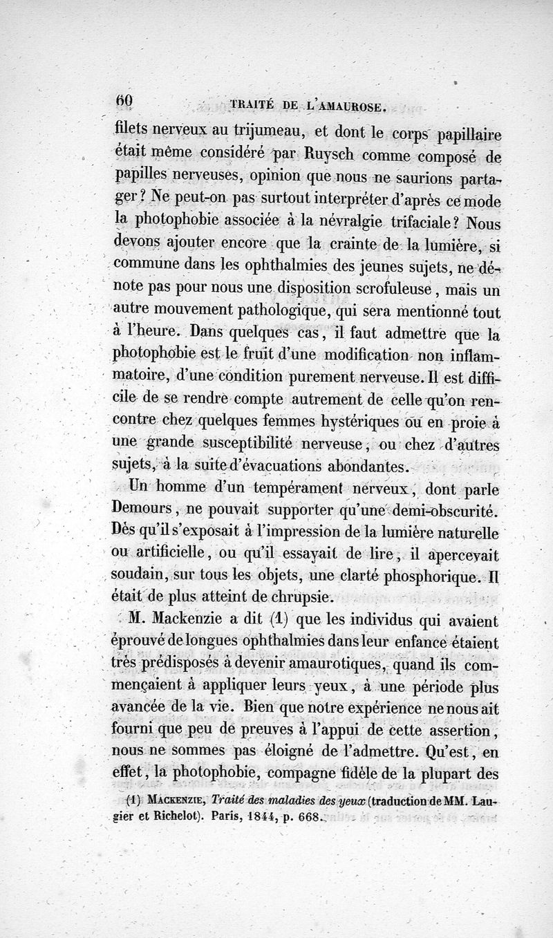 Traité de l'amaurose ou de la goutte-sereine. Ouvrage contenant des faits nombreux de guérison de cette maladie, dans des cas de cécité complète.