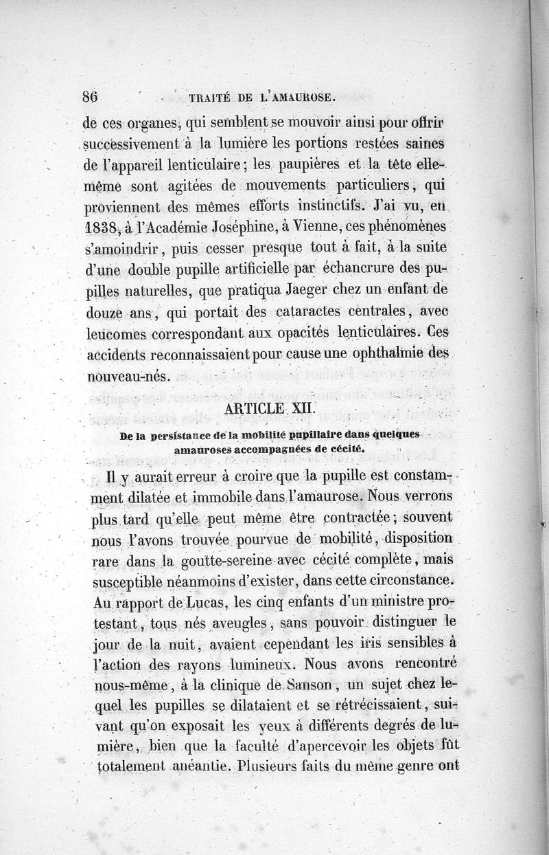 Traité de l'amaurose ou de la goutte-sereine. Ouvrage contenant des faits nombreux de guérison de cette maladie, dans des cas de cécité complète.