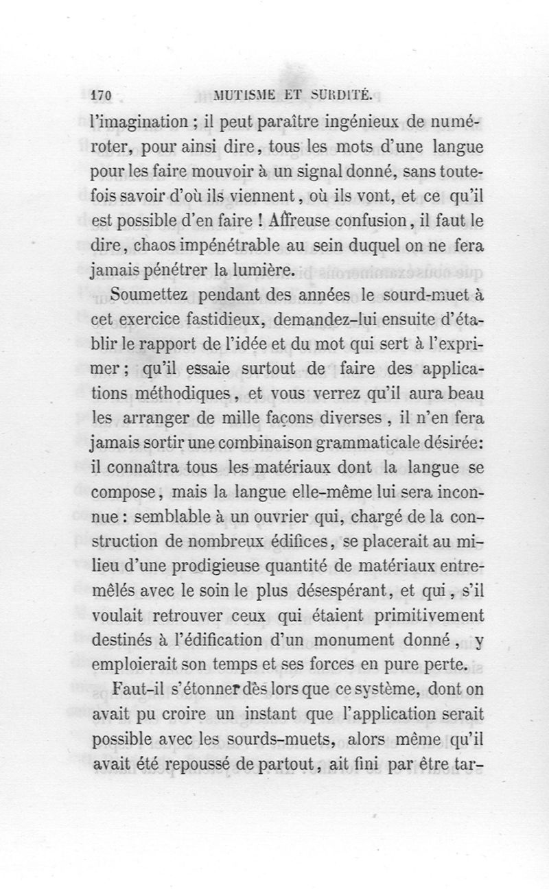 Mutisme et surdité ou influence de la surdité native sur les facultés physiques, intellectuelles et morales