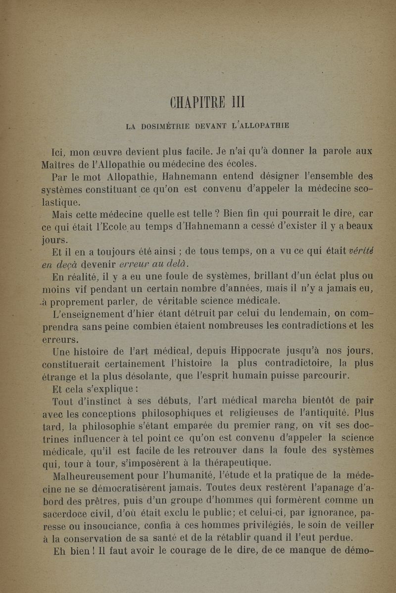 Philosophie médicale‎ : la dosimétrie devant l'homéopathie et l'allopathie