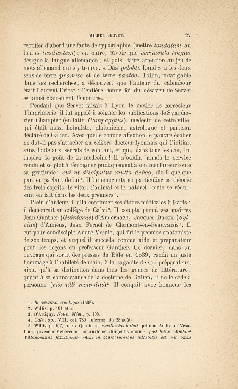 Michel Servet d'après ses plus récents biographes