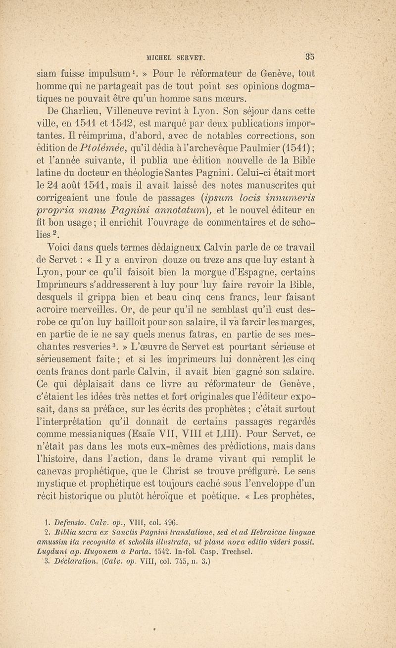 Michel Servet d'après ses plus récents biographes
