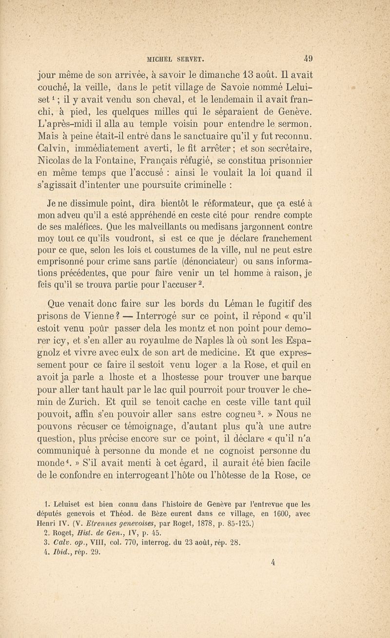 Michel Servet d'après ses plus récents biographes