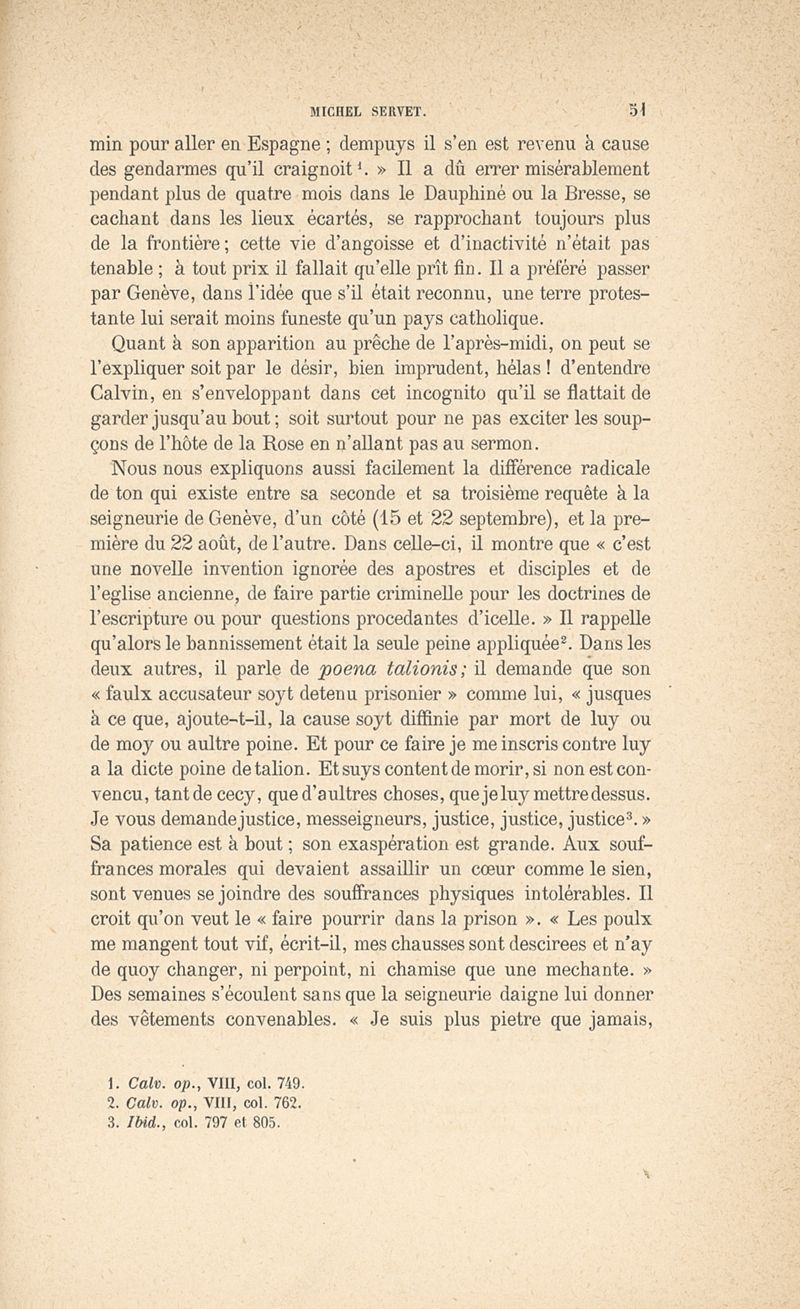 Michel Servet d'après ses plus récents biographes