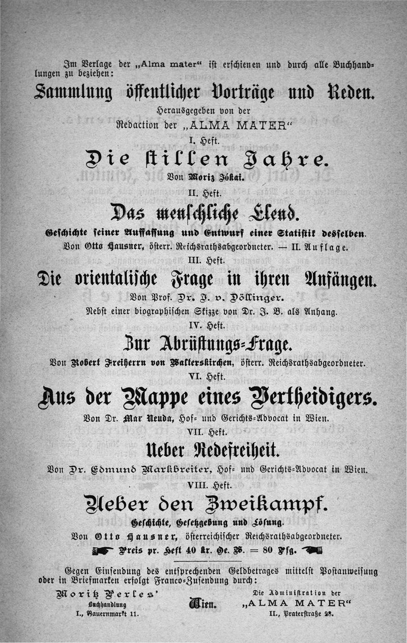 Wien : Verlag der Alma Mater, 1880.