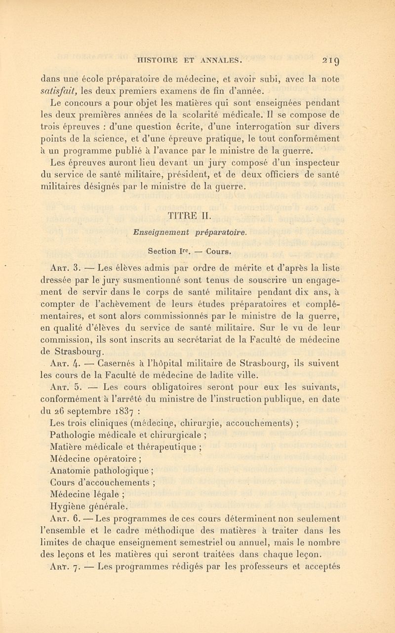 Histoire de l'École impériale du service de santé militaire, instituée en 1856 à Strasbourg