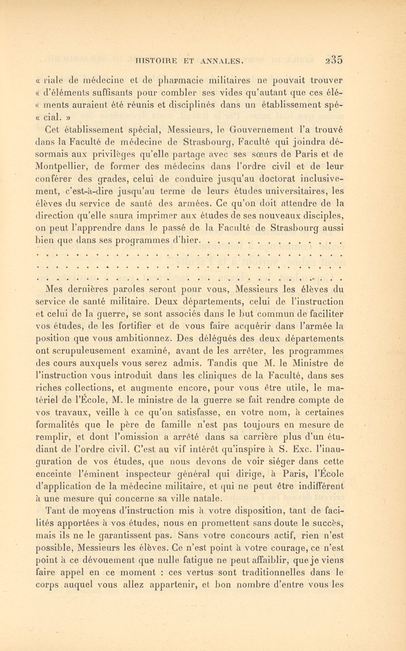Histoire de l'École impériale du service de santé militaire, instituée en 1856 à Strasbourg