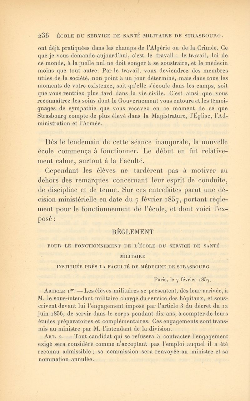 Histoire de l'École impériale du service de santé militaire, instituée en 1856 à Strasbourg