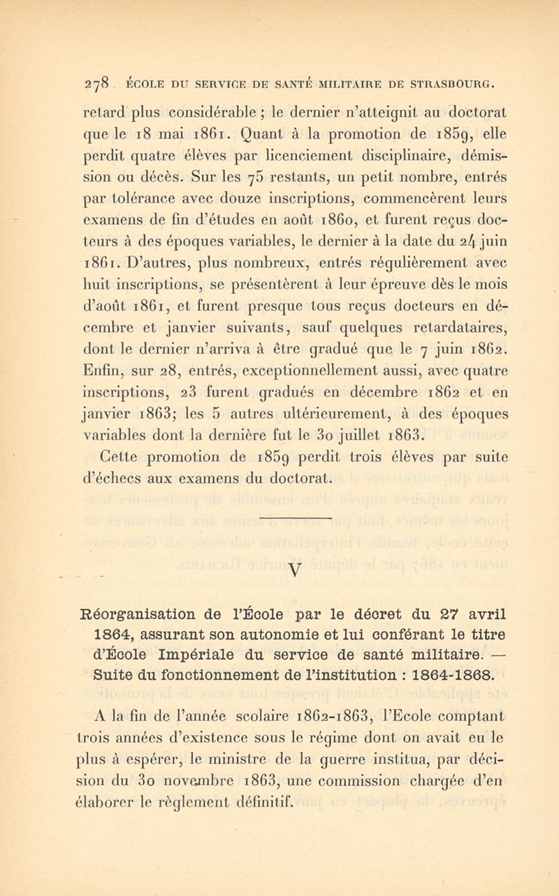 Histoire de l'École impériale du service de santé militaire, instituée en 1856 à Strasbourg