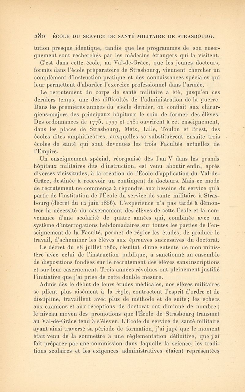 Histoire de l'École impériale du service de santé militaire, instituée en 1856 à Strasbourg