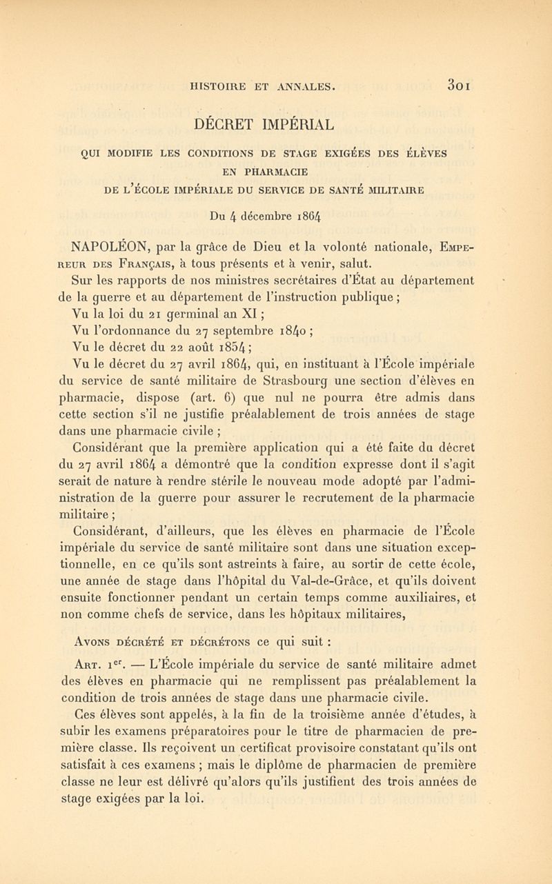 Histoire de l'École impériale du service de santé militaire, instituée en 1856 à Strasbourg