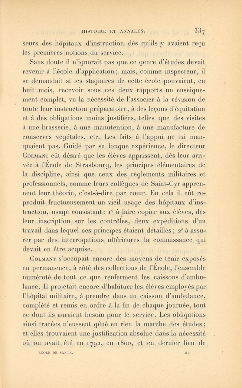 Histoire de l'École impériale du service de santé militaire, instituée en 1856 à Strasbourg