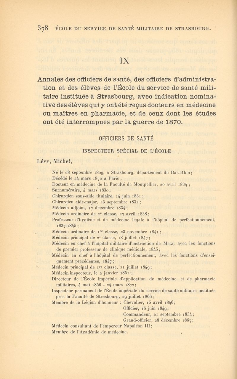 Histoire de l'École impériale du service de santé militaire, instituée en 1856 à Strasbourg