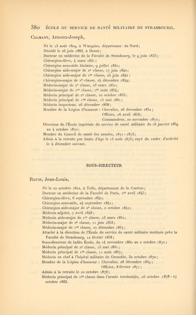 Histoire de l'École impériale du service de santé militaire, instituée en 1856 à Strasbourg