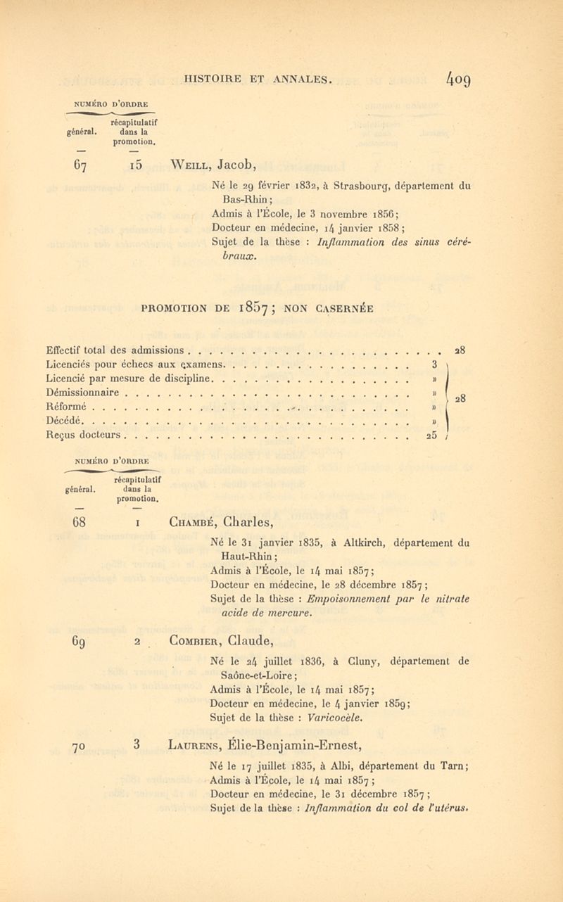 Histoire de l'École impériale du service de santé militaire, instituée en 1856 à Strasbourg