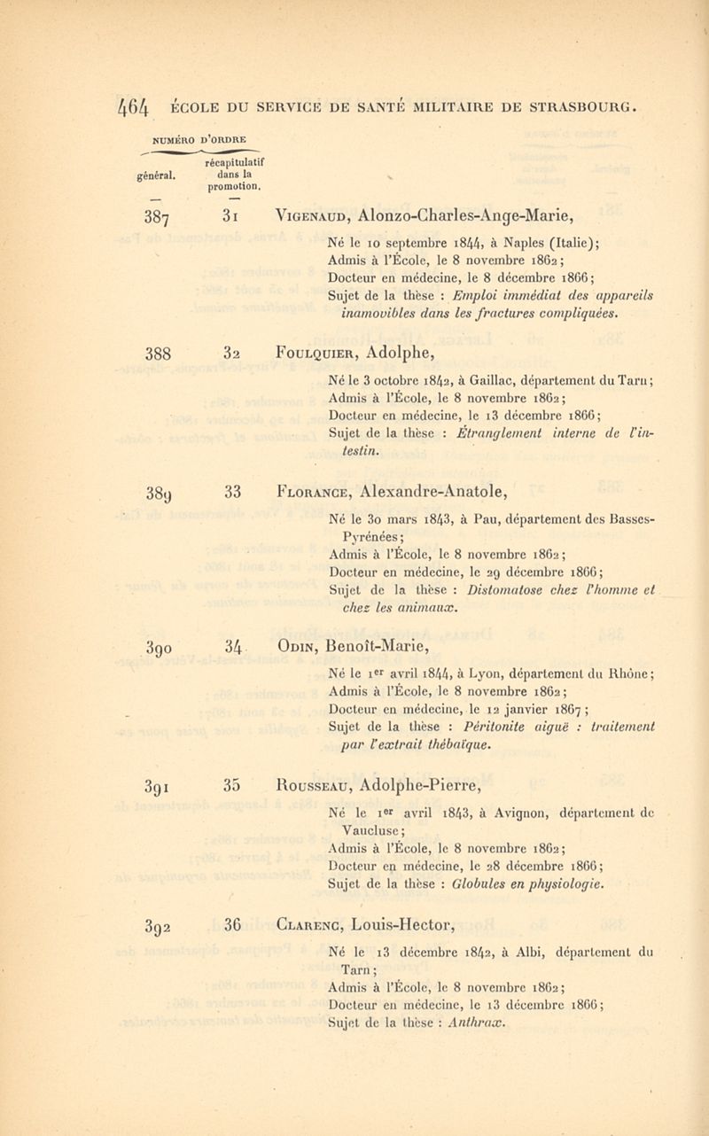 Histoire de l'École impériale du service de santé militaire, instituée en 1856 à Strasbourg