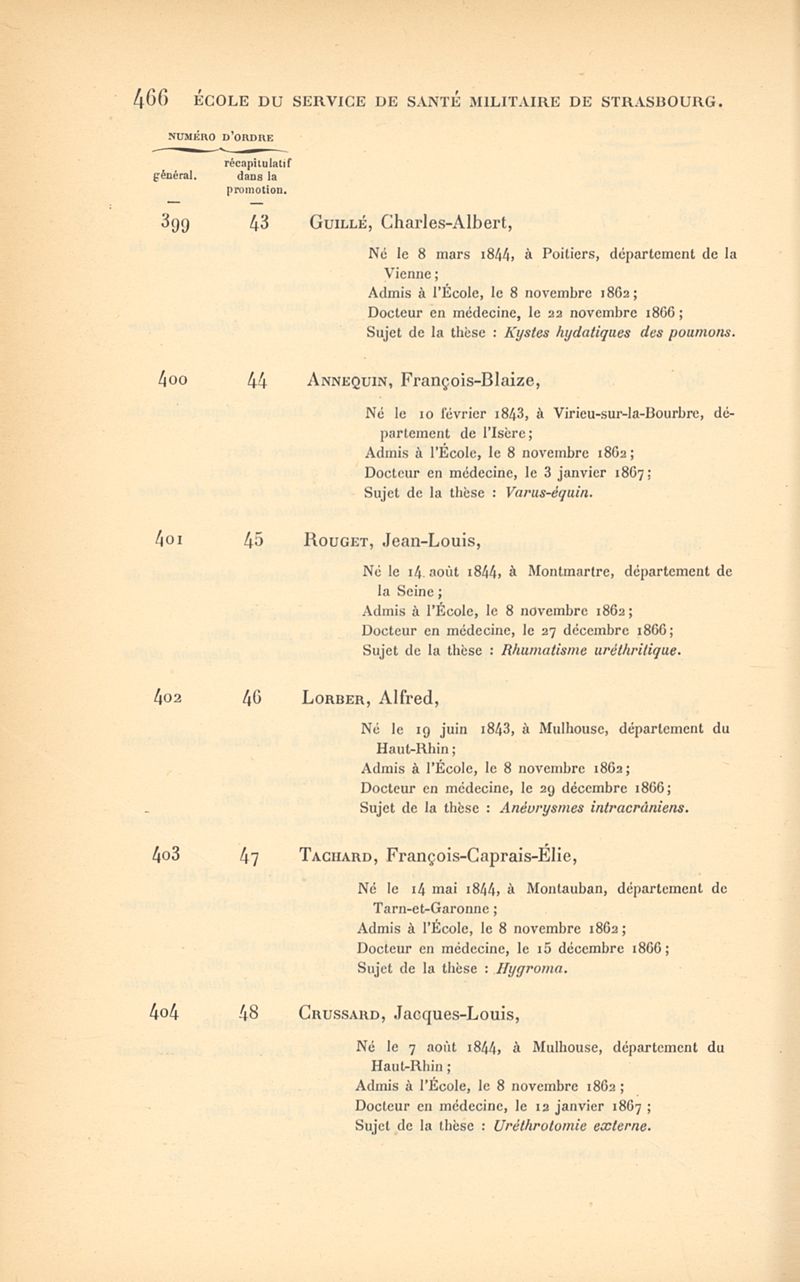 Histoire de l'École impériale du service de santé militaire, instituée en 1856 à Strasbourg