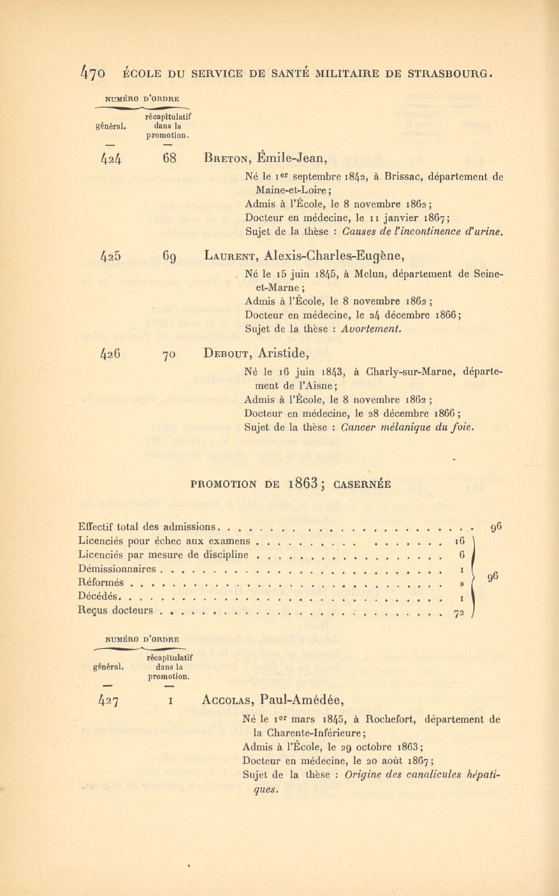 Histoire de l'École impériale du service de santé militaire, instituée en 1856 à Strasbourg