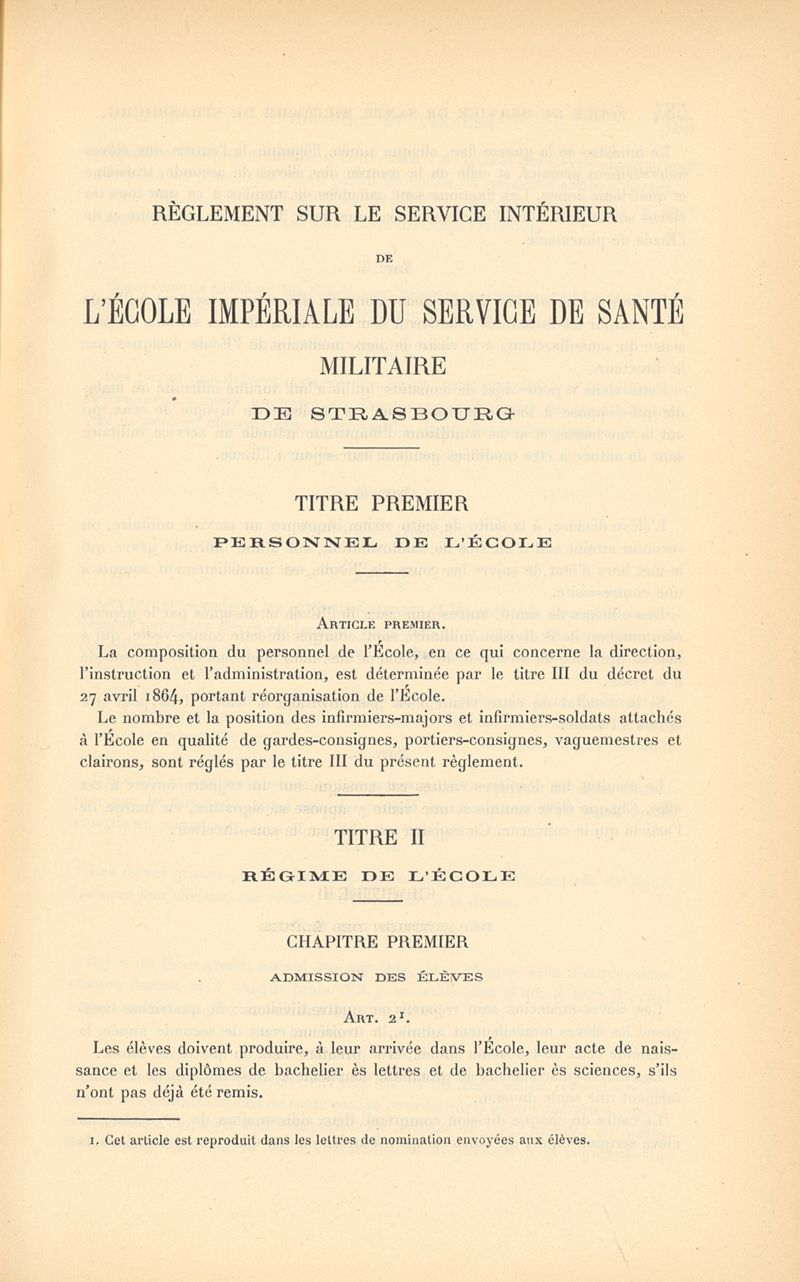 Histoire de l'École impériale du service de santé militaire, instituée en 1856 à Strasbourg