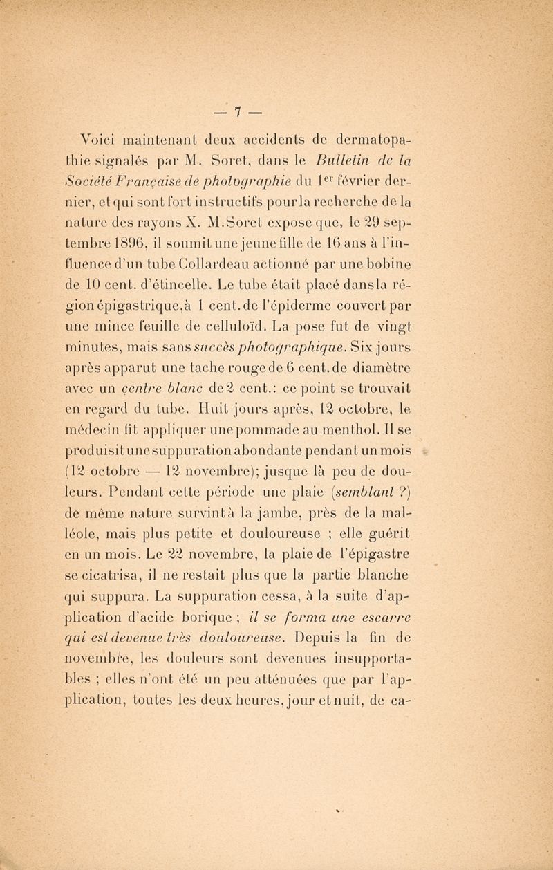 De la nature des rayons X. Réflexions sur la cause de leurs effets pathologiques et photographiques