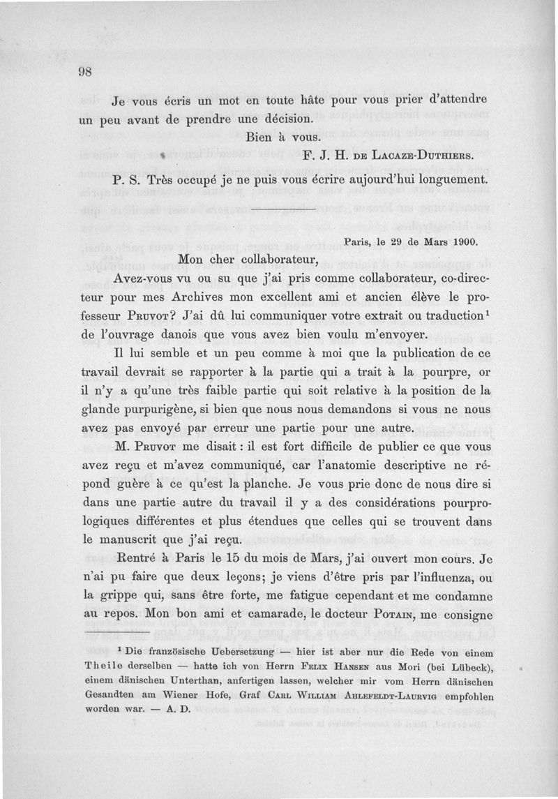 Lacaze-Duthiers, Henri de / Dedekind, Alexander .