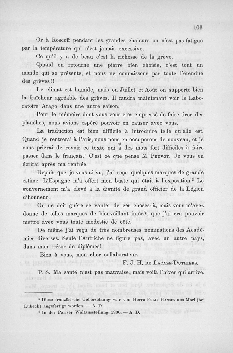 Lacaze-Duthiers, Henri de / Dedekind, Alexander .