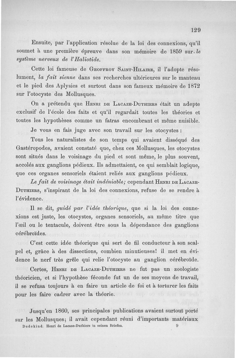 Lacaze-Duthiers, Henri de / Dedekind, Alexander .