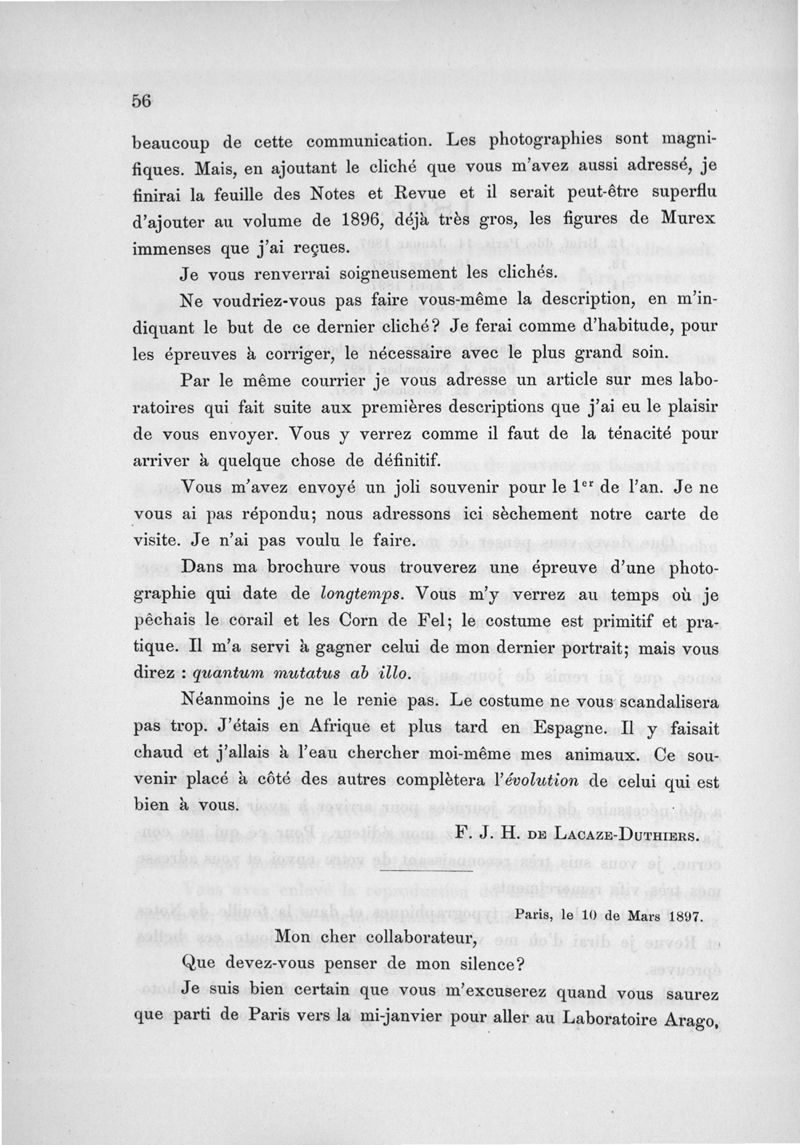 Lacaze-Duthiers, Henri de / Dedekind, Alexander .