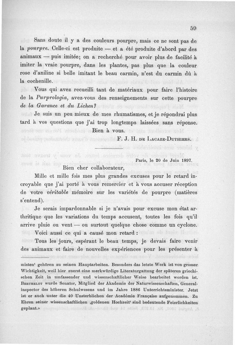 Lacaze-Duthiers, Henri de / Dedekind, Alexander .