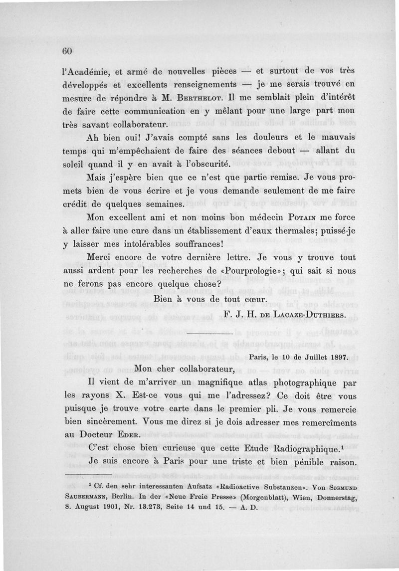Lacaze-Duthiers, Henri de / Dedekind, Alexander .