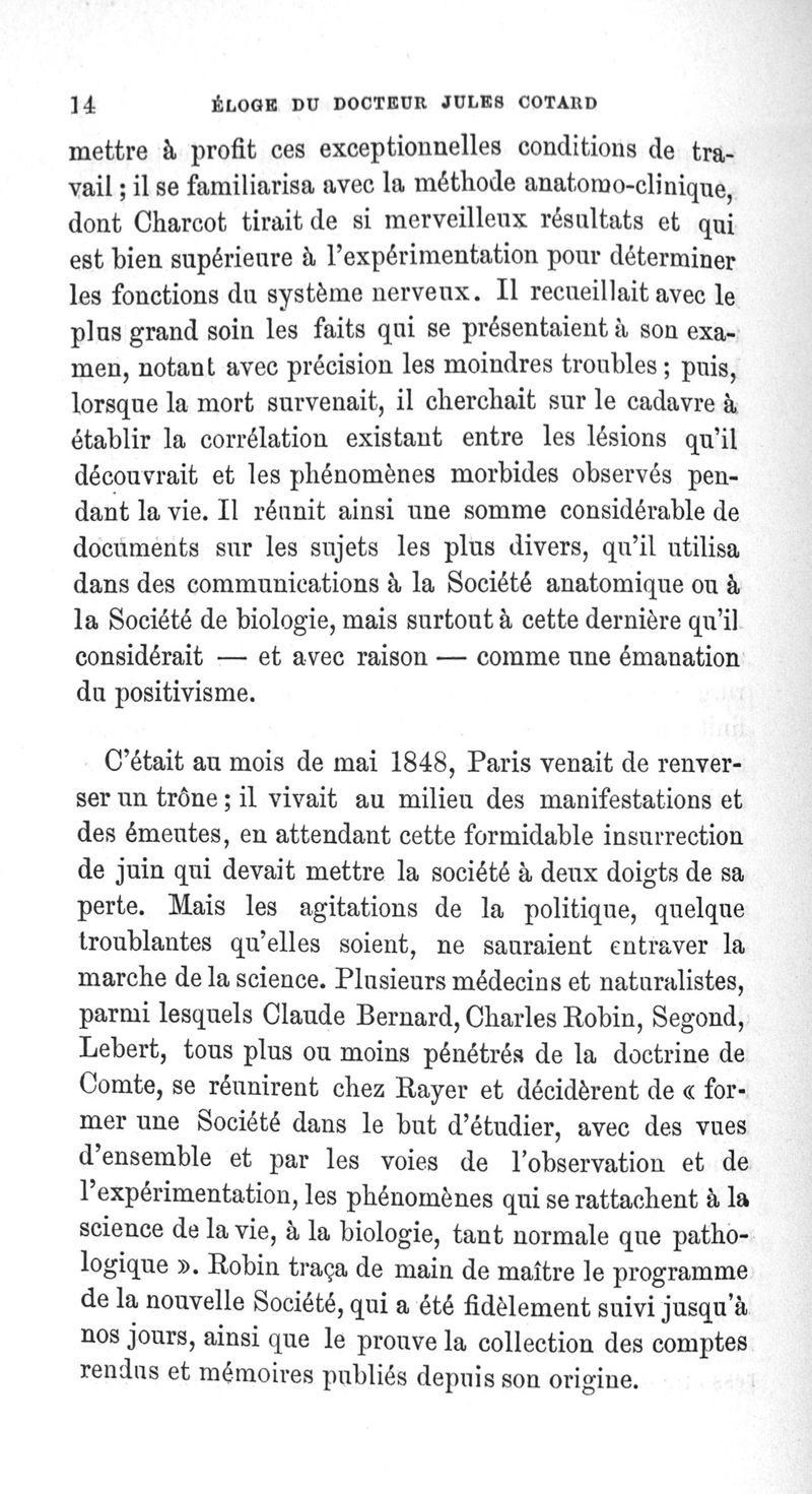 Eloge du Docteur Jules Cotard
