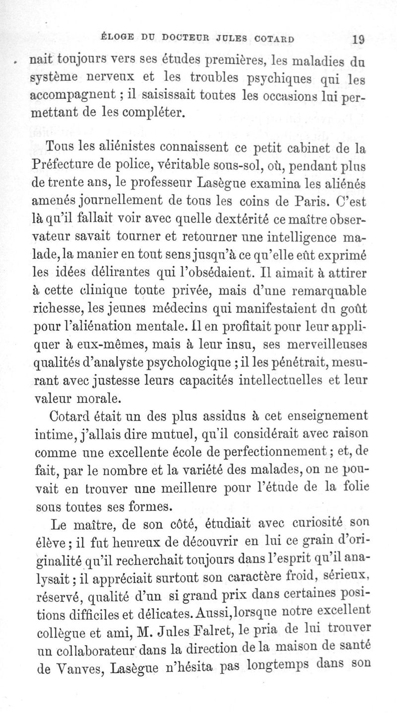 Eloge du Docteur Jules Cotard