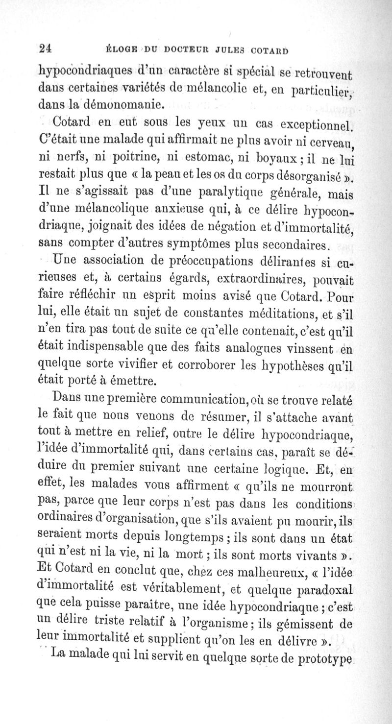 Eloge du Docteur Jules Cotard