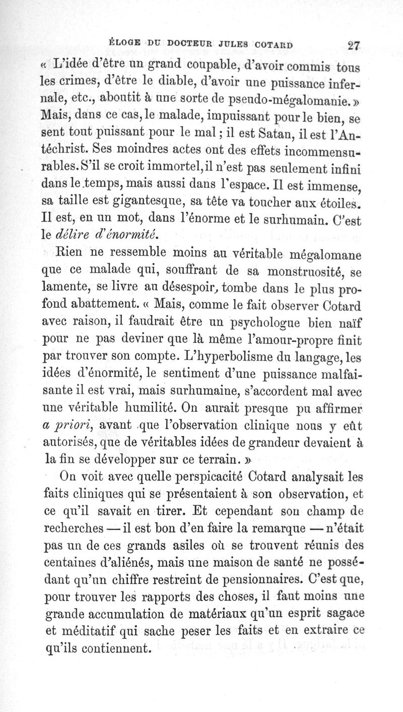 Eloge du Docteur Jules Cotard