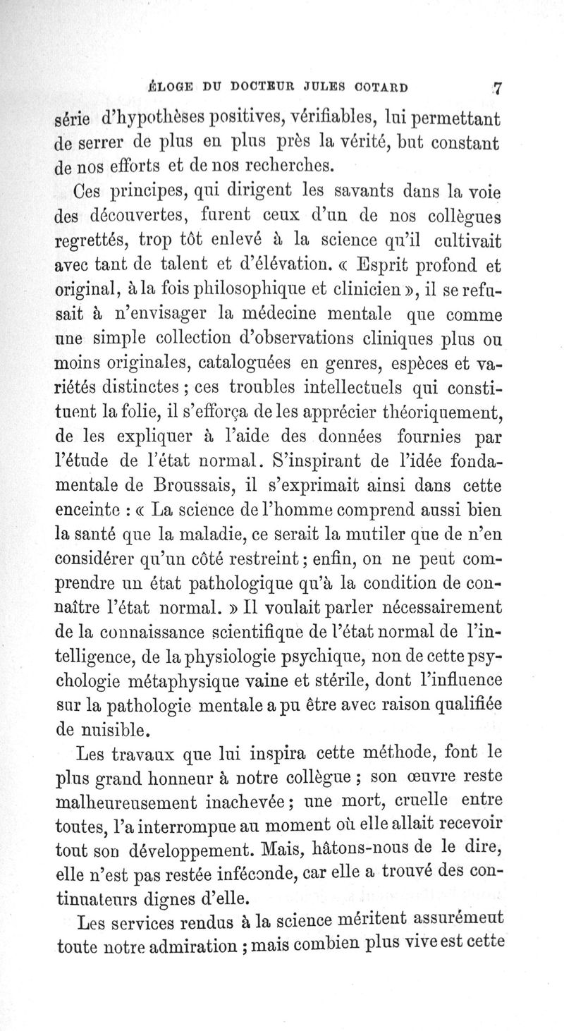 Eloge du Docteur Jules Cotard