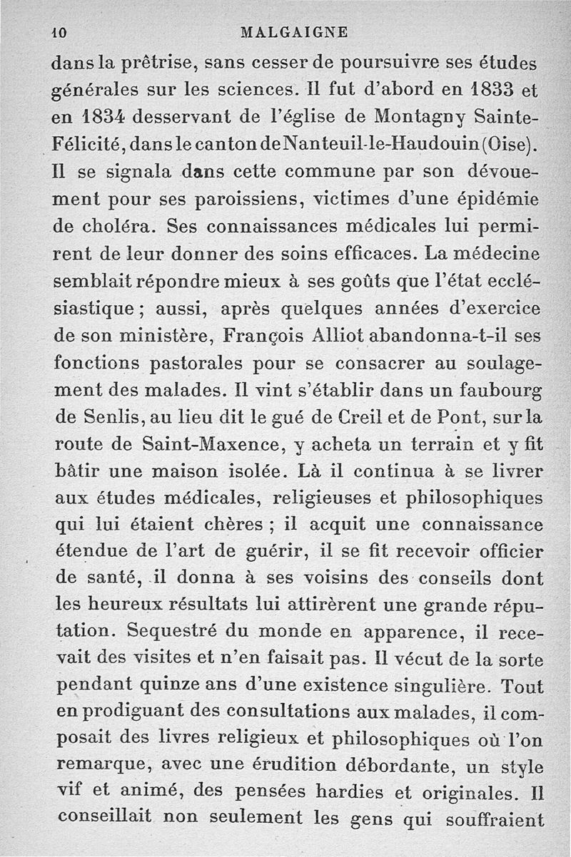 Malgaigne (1806-1865) : étude sur sa vie et ses idées d'après ses écrits, des papiers de famille et des souvenirs particuliers