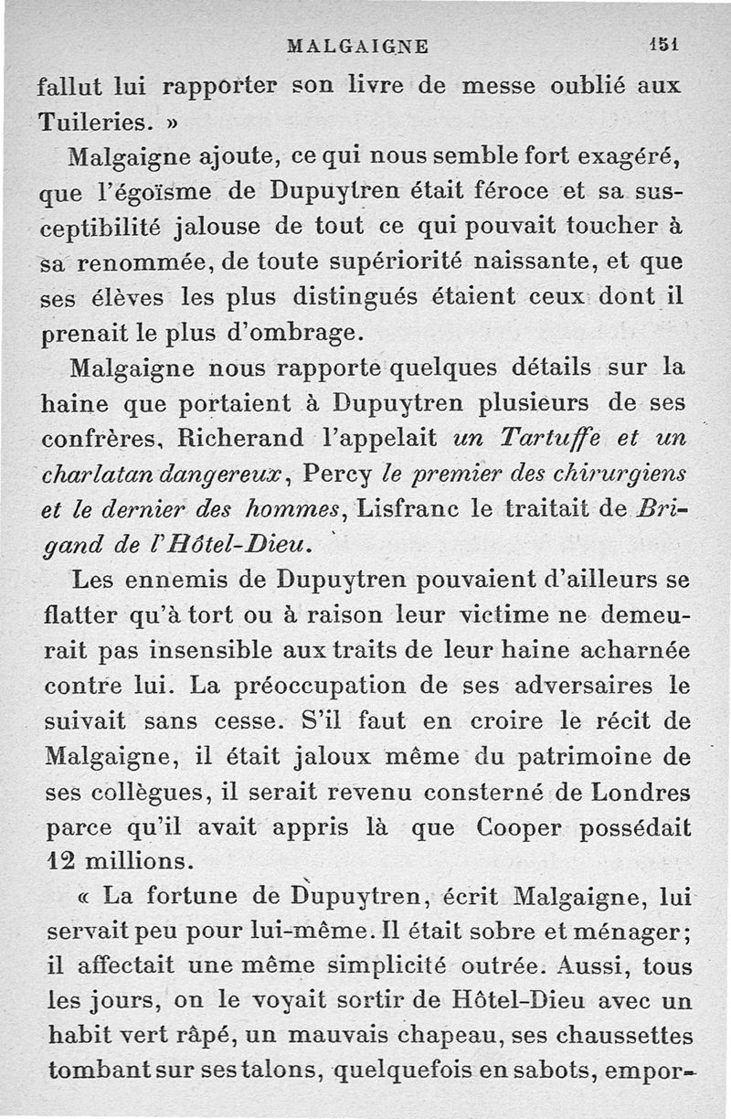 Malgaigne (1806-1865) : étude sur sa vie et ses idées d'après ses écrits, des papiers de famille et des souvenirs particuliers