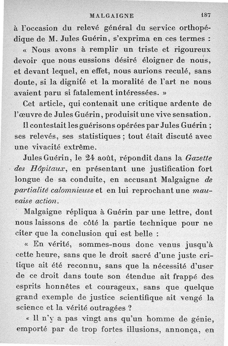 Malgaigne (1806-1865) : étude sur sa vie et ses idées d'après ses écrits, des papiers de famille et des souvenirs particuliers