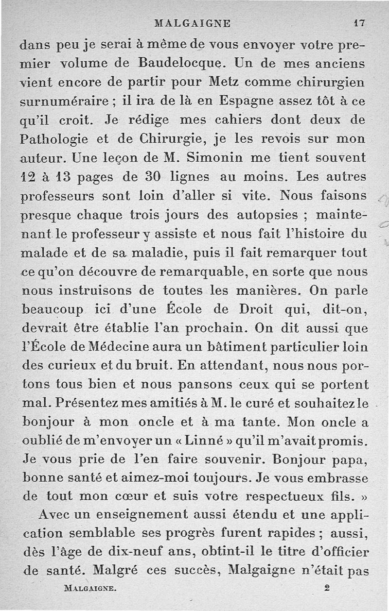 Malgaigne (1806-1865) : étude sur sa vie et ses idées d'après ses écrits, des papiers de famille et des souvenirs particuliers