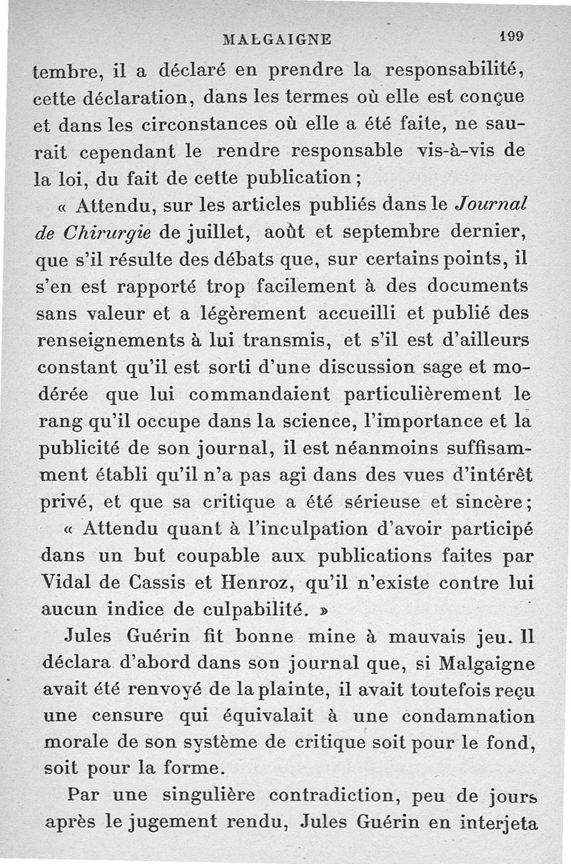 Malgaigne (1806-1865) : étude sur sa vie et ses idées d'après ses écrits, des papiers de famille et des souvenirs particuliers