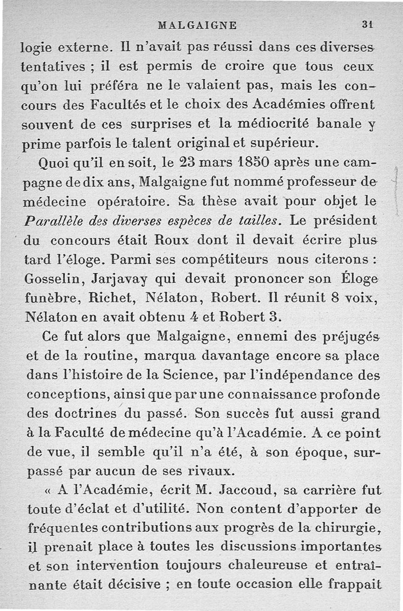 Malgaigne (1806-1865) : étude sur sa vie et ses idées d'après ses écrits, des papiers de famille et des souvenirs particuliers