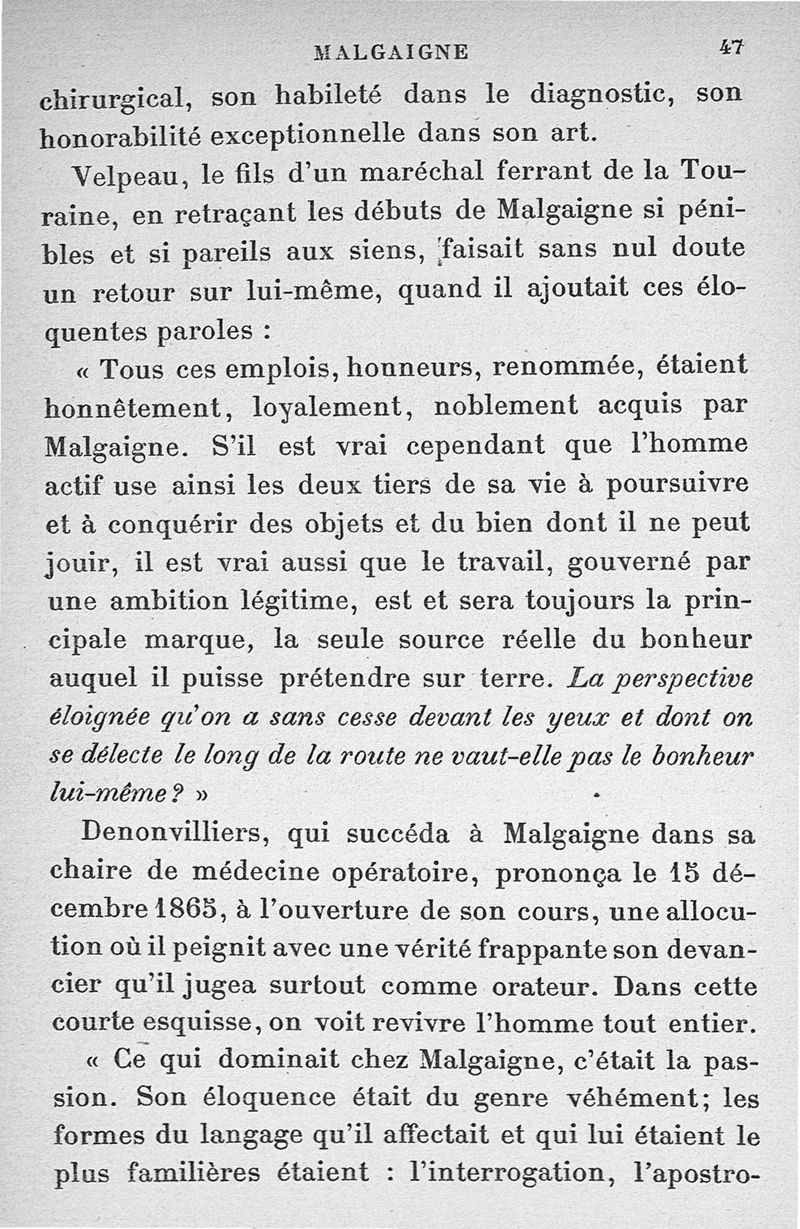 Malgaigne (1806-1865) : étude sur sa vie et ses idées d'après ses écrits, des papiers de famille et des souvenirs particuliers