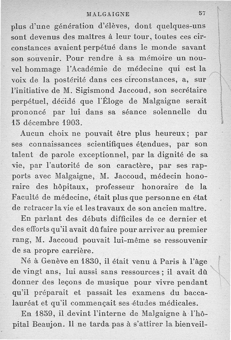 Malgaigne (1806-1865) : étude sur sa vie et ses idées d'après ses écrits, des papiers de famille et des souvenirs particuliers