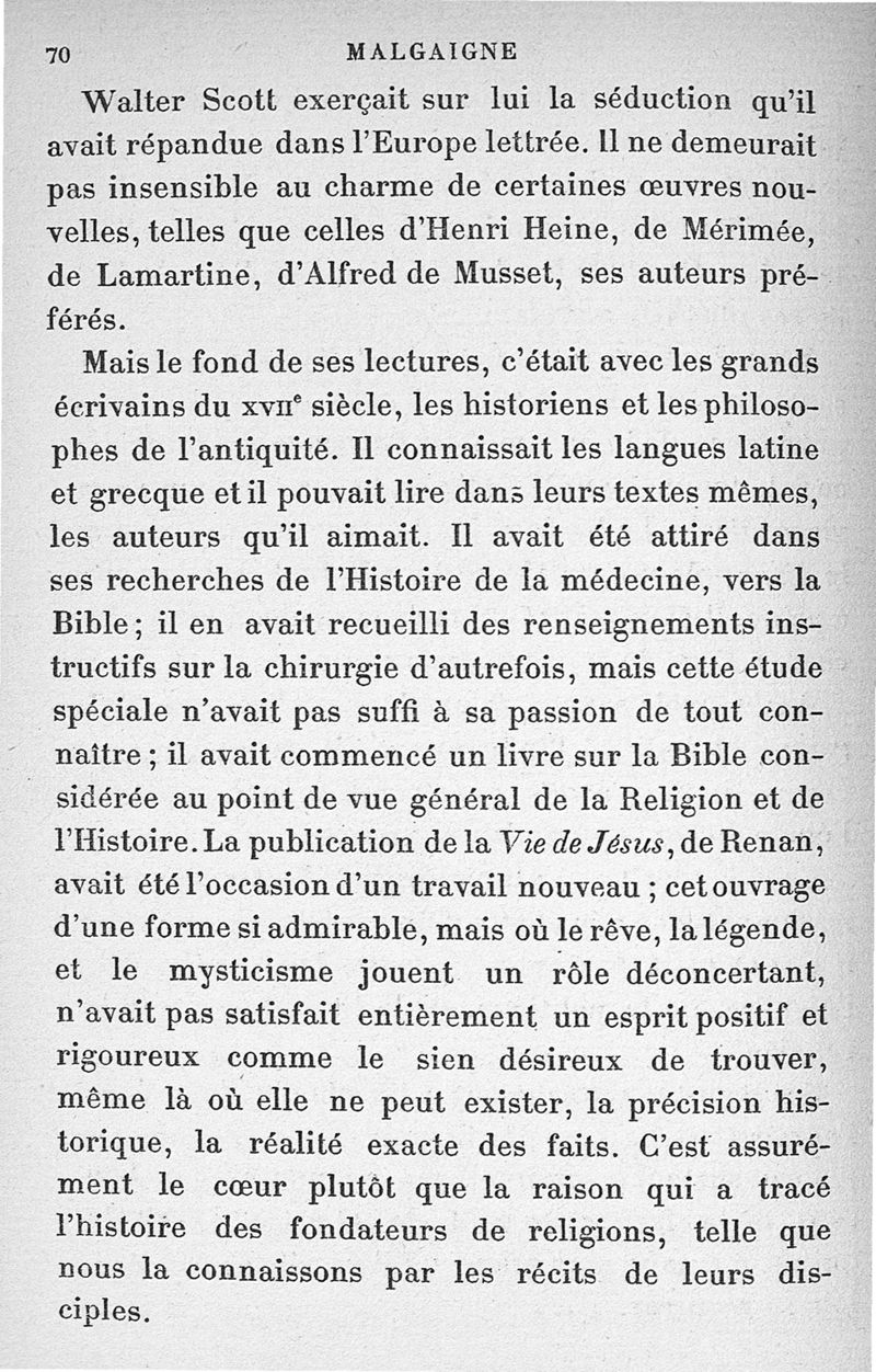 Malgaigne (1806-1865) : étude sur sa vie et ses idées d'après ses écrits, des papiers de famille et des souvenirs particuliers