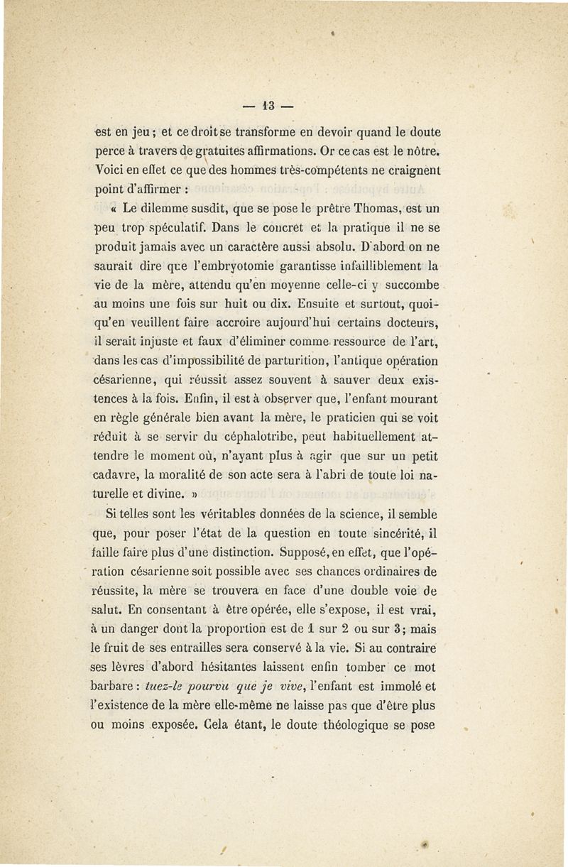 L'embryotomie au point de vue théologique et moral ou examen de la question s'il est permis de tuer l'enfant pour sauver la mère