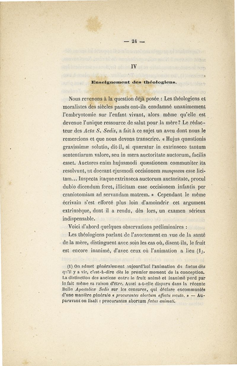 L'embryotomie au point de vue théologique et moral ou examen de la question s'il est permis de tuer l'enfant pour sauver la mère