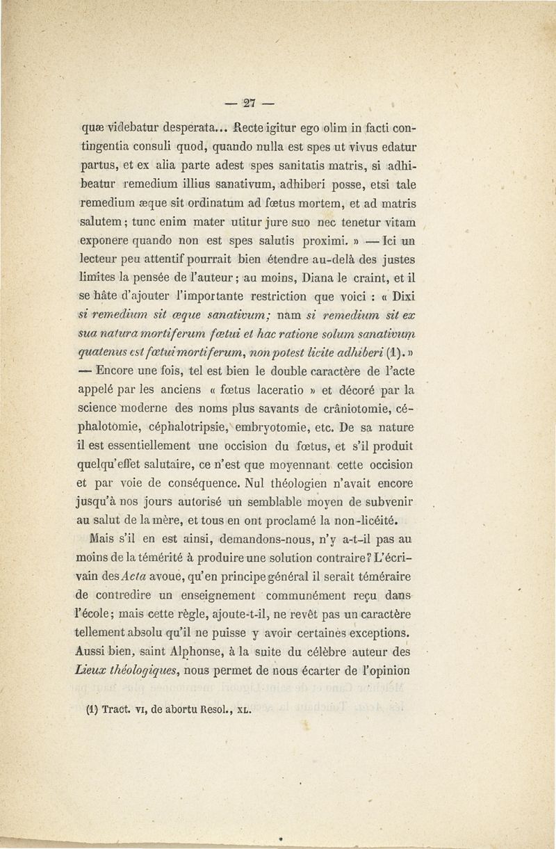L'embryotomie au point de vue théologique et moral ou examen de la question s'il est permis de tuer l'enfant pour sauver la mère