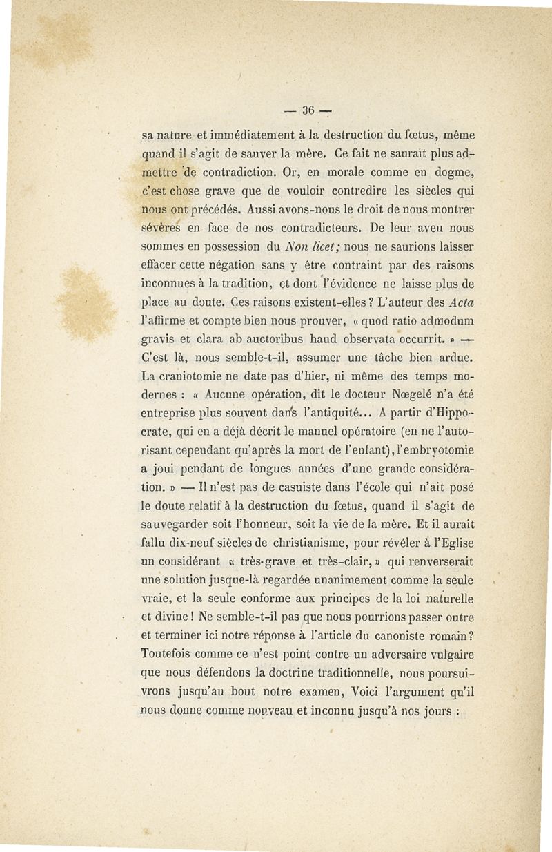 L'embryotomie au point de vue théologique et moral ou examen de la question s'il est permis de tuer l'enfant pour sauver la mère