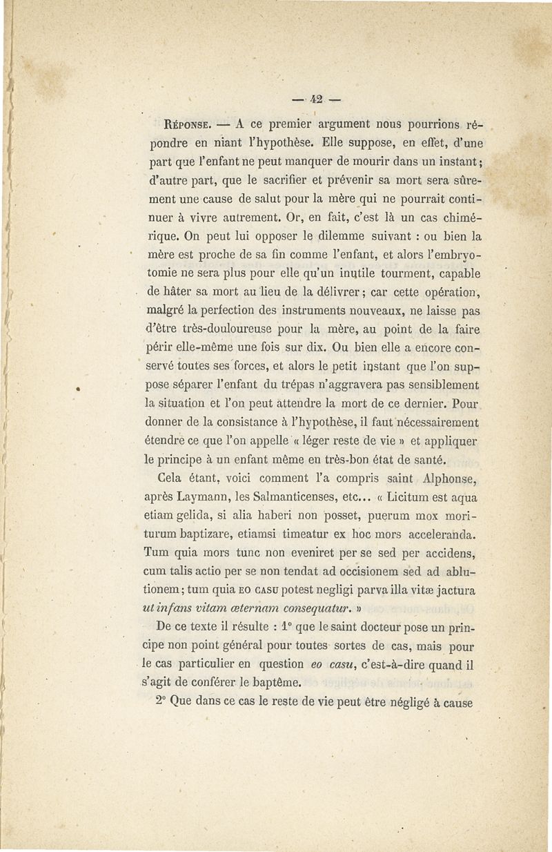 L'embryotomie au point de vue théologique et moral ou examen de la question s'il est permis de tuer l'enfant pour sauver la mère