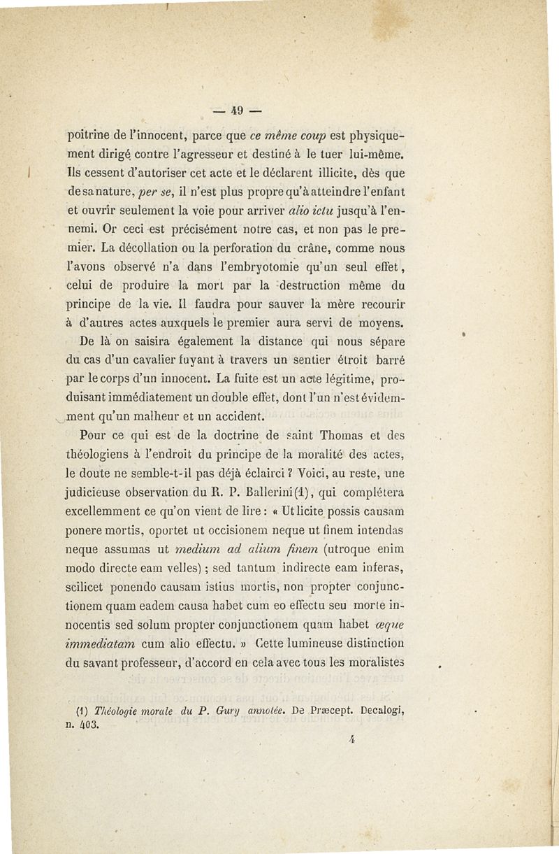 L'embryotomie au point de vue théologique et moral ou examen de la question s'il est permis de tuer l'enfant pour sauver la mère